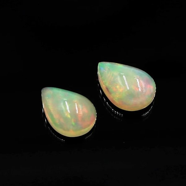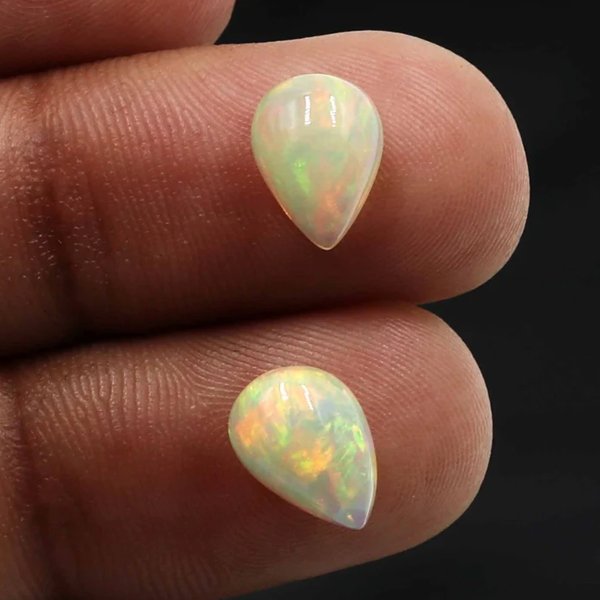 7x10mm Ethiopian Opal Pear Stone, Ethiopian Opal Cabochon Earrings Pair, Welo Opal Beads Super Flashy AAA Quality Ethiopian Opal for Jewelry