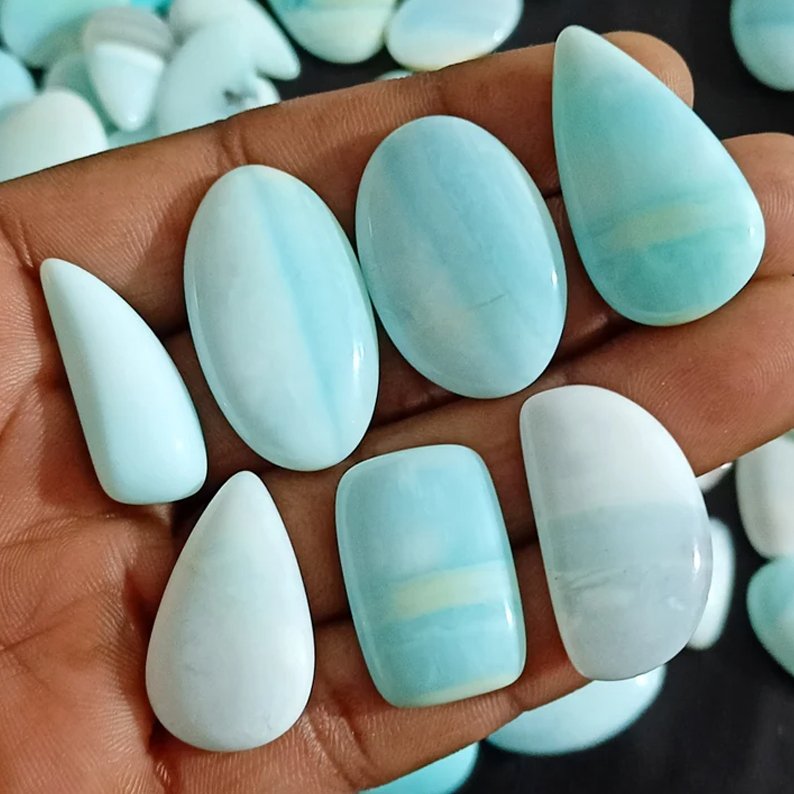 Blue Opal Cabochon AAA+ Blue Opal Stone, Wholesale lot Blue Opal Loose Gems, Dyed Blue Opal Gemstones for jewelry Mix Size/Shapes Per Carats KG0528